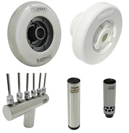 Assim como o dispositivo de aspiração, fabricados nos modelos standard ou top line ( com insertos de latão) o dispositivo de retorno também possui função importante na construção de uma piscina, haja visto que por meio dele é devolvido à piscina a água já processada no sistema filtrante, além de produzir um fluxo dágua em direção à coadeira (skimmer) e ao dreno de fundo ou antiturbilhão, promovendo a movimentação equalizada da água, contribuindo em sua melhor oxigenação, e ainda tendo o papel de homogeneização ; ou seja , distribuição uniforme da mistura dos produtos químicos do tratamento da água da piscina.