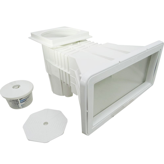 O Skimmer é uma caixinha de captação de forma retangular ou quadrada, que deve ser embutida ou parafusada nas paredes da piscina. Há opções adaptáveis aos diferentes tipos: alvenaria, vinil e fibra.